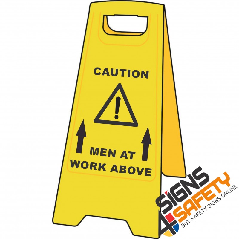 Floor stand signs are perfect for use in situations where a temporary sign is required to warn the public to be cautious in the immediate area - Identify potentially hazardous areas with double sided portable floor stands. Printed bold black message on bright color background, stands up making them easy to see from both sides. Floor stand signs help you send a clear message to employees and visitors approaching a hazardous condition from each direction.