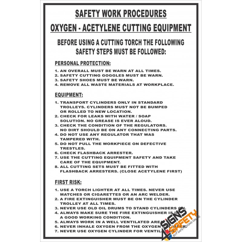 (FM10) Gas Cutting Equipment Safety Procedure Sign