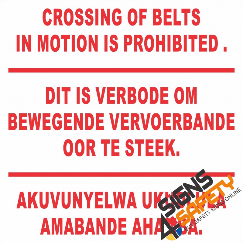 (FM38) Crossing Of Belts In Motion Prohibited Sign View larger