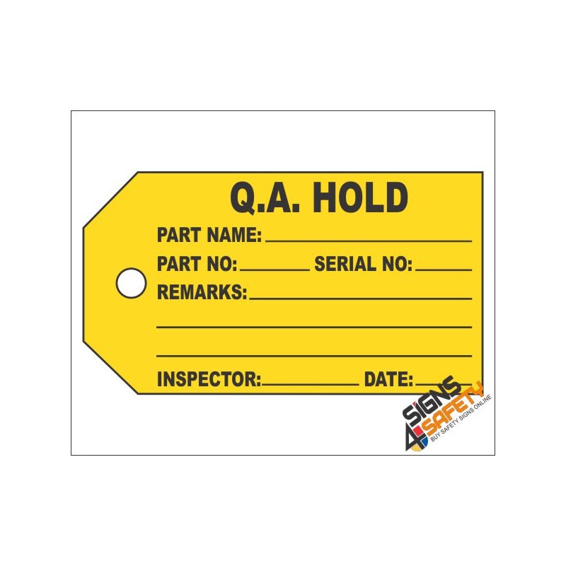 Q.A. hold status inventory tag displays the status of important inventory and shipments that are quality approved. An Q.A. hold status inventory tag is a helpful resource to help protect the health and safety of others, and is not a substitute for required protective measures for reducing or eliminating hazards.
