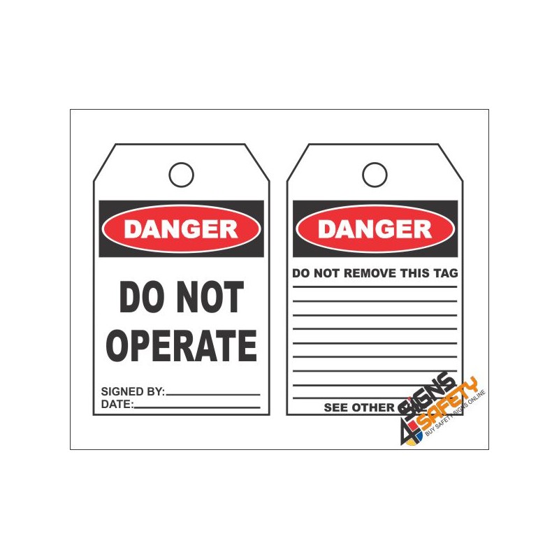 Danger do not operate tags use official OSHA headers for machine safety protocol and compliance. The objective of danger do not operate tags is to notify staff that there is immediate danger present during attempted use of equipment. These danger do not operate tags are useful tools to help protect the health and safety of personnel, but are not a substitute for required protective measures for eliminating or reducing hazards. These tags comply with the OSHA 1910.145 standard, where the danger tags indicate an imminently hazardous situation, which, if not avoided, will result in death or serious injury.